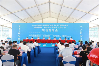 6月27日上午,由南昌市住房和城鄉(xiāng)建設(shè)局主辦的2023年南昌市住建領(lǐng)域“安全生產(chǎn)月”活動(dòng)推進(jìn)會(huì)暨建筑施工安全生產(chǎn)標(biāo)準(zhǔn)化示范工地觀摩會(huì)隆重舉行,主會(huì)場(chǎng)設(shè)在由同濟(jì)建管公司監(jiān)理的南昌健康職業(yè)技術(shù)學(xué)院建設(shè)項(xiàng)目。