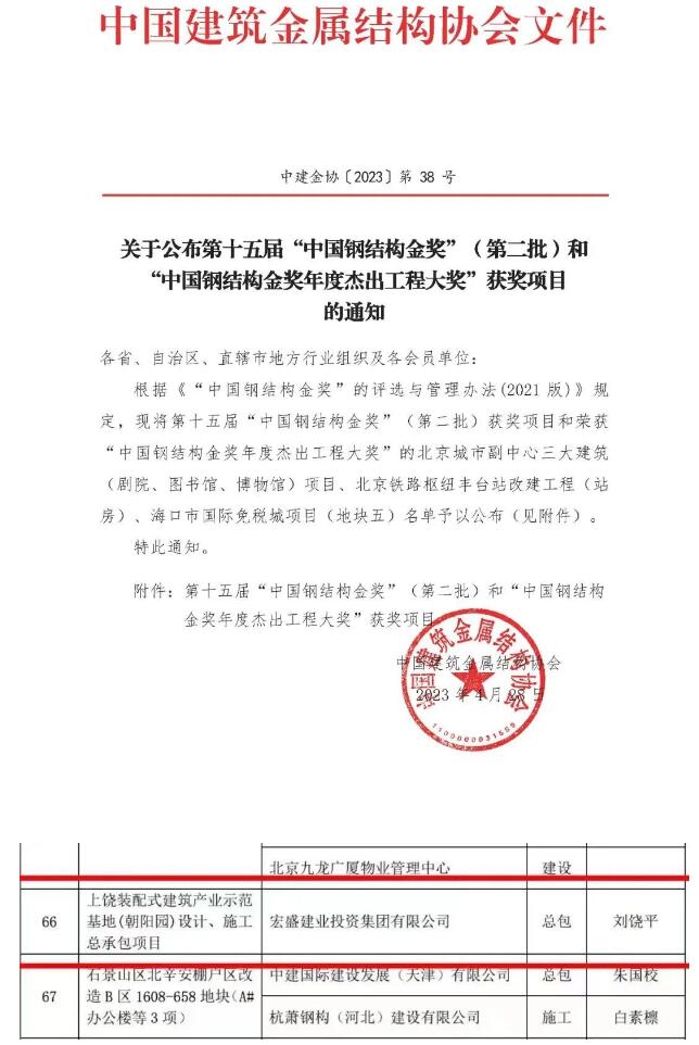 據(jù)悉,中國建筑工程鋼結構金獎,是經(jīng)國務院批準的建筑領域國家級的優(yōu)質(zhì)工程獎,是中國建筑鋼結構行業(yè)工程質(zhì)量的最高榮譽,每年評選一次,評選對象是質(zhì)量達到國內(nèi)領先水平的各類建筑鋼結構工程。