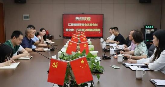 5月15日下午,江西省贛萍商會名譽會長胡立儉一行蒞臨公司調(diào)研指導(dǎo)。公司主要負責(zé)人和相關(guān)部門負責(zé)人參加座談會。