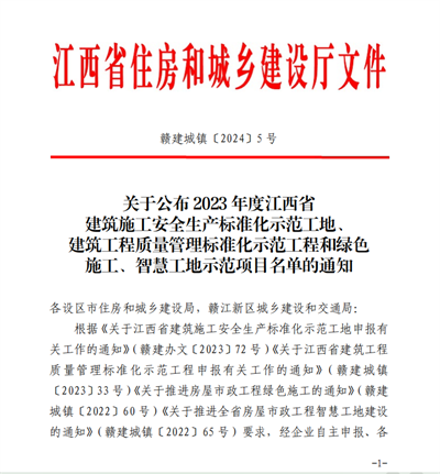 近日,江西省住建廳發(fā)布《關(guān)于公布2023年度江西省建筑施工安全生產(chǎn)標(biāo)準(zhǔn)化示范工地、建筑工程質(zhì)量管理標(biāo)準(zhǔn)化示范工程和綠色施工、智慧工地示范項(xiàng)目名單的通知》(贛建城鎮(zhèn)〔2024〕5號(hào)),同濟(jì)建管多個(gè)項(xiàng)目獲得榮譽(yù)。