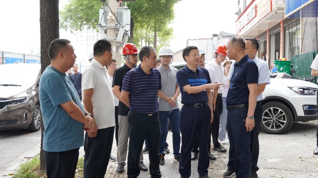 在南環(huán)路路段項目施工現(xiàn)場,康峰一路走、一路問,一路聽、一路看,實地了解道路改造更新、口袋公園建設(shè)等相關(guān)情況,與相關(guān)負(fù)責(zé)人進(jìn)行了深入交流,詳細(xì)詢問了工程具體實施方案、工作舉措和實施過程中遇到的困難和問題,并對下一步工作提出了具體意見和建議。