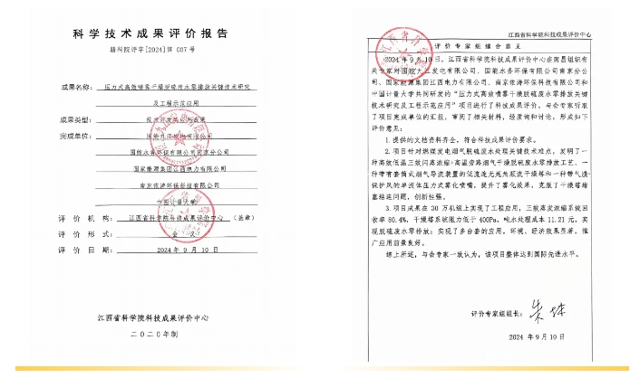 項(xiàng)目創(chuàng)新成果“壓力式高效噴霧干燥脫硫廢水零排放關(guān)鍵技術(shù)研究及工程示范應(yīng)用”順利通過(guò)江西省科學(xué)院科技成果鑒定,現(xiàn)場(chǎng)專家一致認(rèn)為項(xiàng)目整體成果核心創(chuàng)新技術(shù)及其工程應(yīng)用達(dá)到國(guó)際先進(jìn)水平。