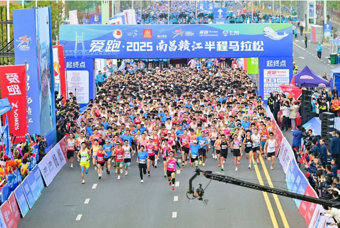 隨著清脆的發(fā)令槍響,來(lái)自全國(guó)各地的2萬(wàn)名跑者如潮水般涌出。同濟(jì)建管跑團(tuán)成員們也迅速融入其中,在人群中穩(wěn)步前行,大家互相鼓勵(lì),一同感受著這場(chǎng)馬拉松的熱烈氛圍。沿途,贛江兩岸的風(fēng)景如詩(shī)如畫,江風(fēng)輕輕拂過(guò),帶來(lái)絲絲涼意,驅(qū)散了奔跑的些許疲憊。